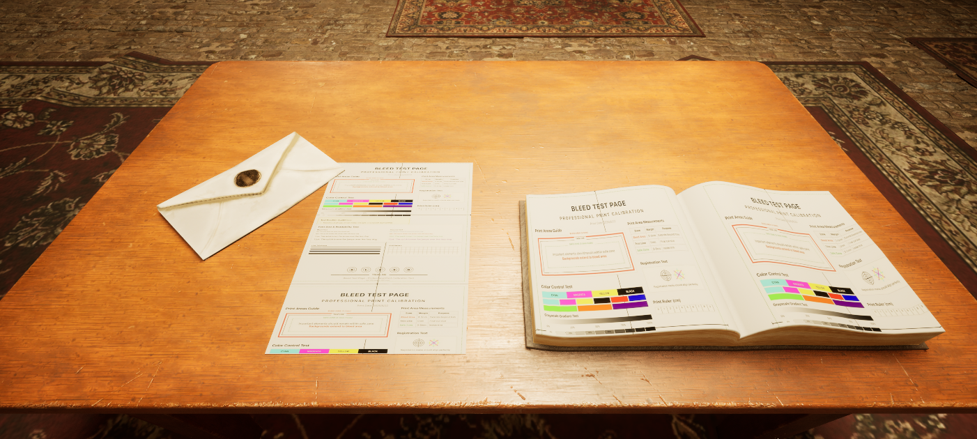 Today I will try to display text on the book, paper and envelope. The idea is to create user widgets, set up a camera that captures the widget to a texture, then create a material with that texture and apply it to the mesh.